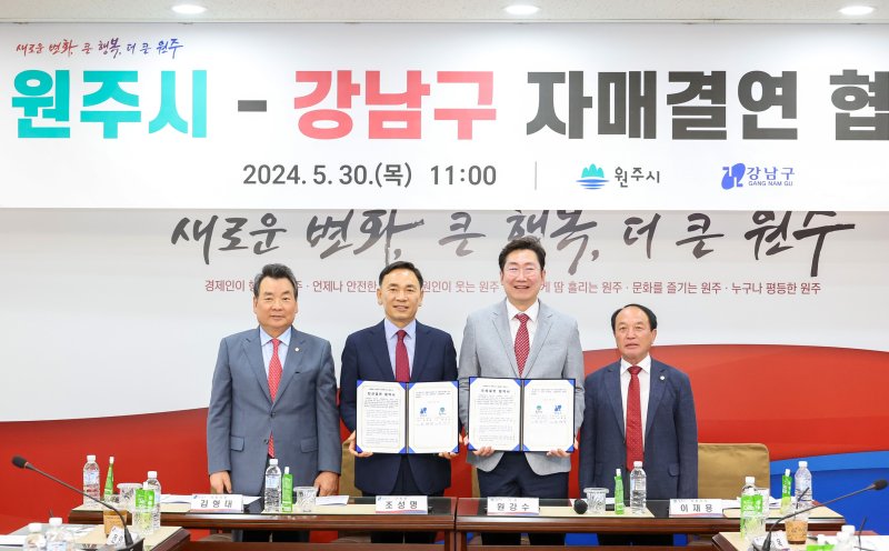 원강수 시장은 "의료, 교육, 농·특산물 직거래 등에서 원주시민과 강남구민이 실감할 수 있는 교류를 추진해 자매도시로서 상생 발전을 기대한다"고 말했다.