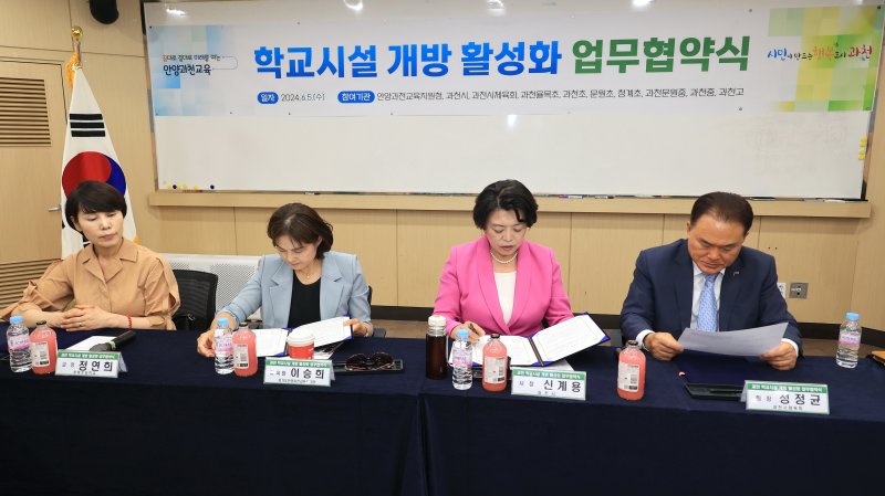 [과천=뉴시스] 박석희 기자 = 경기 과천시 관내 7개 학교가 운동장, 체육관 등 운동 시설을 개방한다. 이들 학교는 최근 과천시민회관 강좌실에서 과천시와 ‘학교시설 개방 활성화’를 위한 업무협약을 체결했다. 개방 날짜 등 구체적 시기는 추후 결정한다.