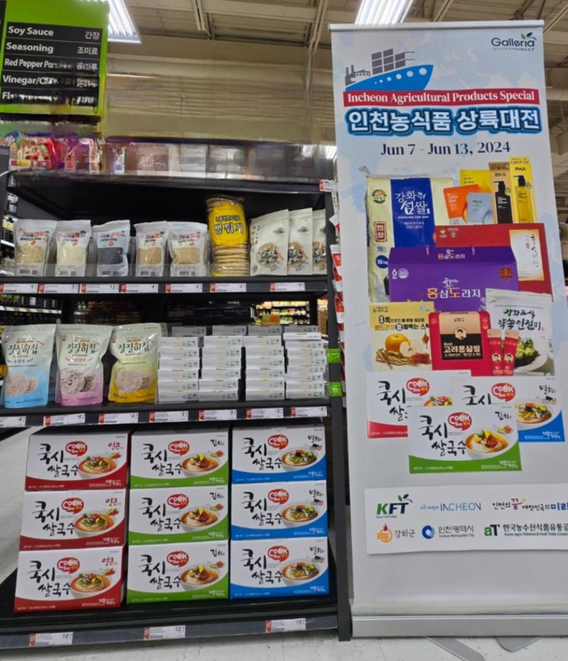 인천시는 현지시간 6월 7일 토론토 갤러리아 슈퍼마켓 욕밀(YORKMILLS)점에 인천농식품 상설판매장을 개장했다고 9일 밝혔다.