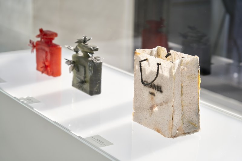 최 작가는 소비사회 아름다움의 상징으로 자리 잡은 명품을 모티프로 유리 소재 특성을 활용해 아름다움과 가치를 표현한 작품을 전시한다. 유물 시리즈의 가방, 쇼핑백, 향수병, 하이힐로 구성된 작품 8종을 볼 수 있다.