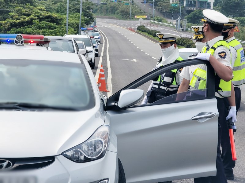 제주경찰청은 이날 오전 9시30분부터 약 2시간 동안 제주시 애월읍 구엄교차로 왕복 4차선 도로에서 음주운전 단속을 벌였다. 양방향 2차선 도로에 4명씩 배치돼 비접촉 음주측정기로 이뤄졌다.