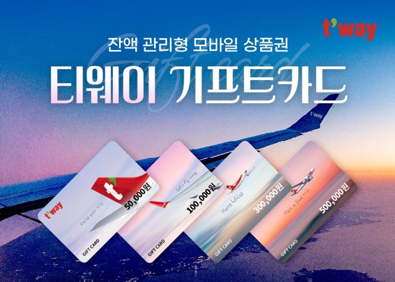 티웨이항공의 모바일 기프트카드는 각각 5만원과 10만원, 30만원, 50만원 등 총 4종으로 출시됐다.