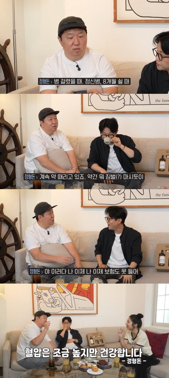 특히 정형돈은 건강 이상 소문 때문에 "나 이제 보험도 못 든다"고 하소연했다. 곁에 있던 개그맨 박성광이 "이 형 보험 들려면 특약을 엄청 걸어야 된다"고 하자, 정형돈은 "만약 지금 보험 들어도 몇천만원씩 내야 될거야"라고 너스레 떨었다.
