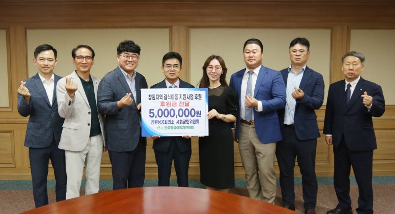 전달식에는 한국결식아동지원협회 김영태 회장, 사회공헌위원회 위원장 박정우(웰템 대표이사), 송정아 부위원장(송정아회계사무소 대표), 김영규 위원(대영전자 사장), 신성욱 위원(대신산업 대표이사), 강동필 위원(한창테크 대표이사), 오명원 위원(유비텍 대표), 백시출 창원상의 상근부회장이 참석했다.