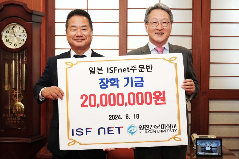 (대구=뉴스1) 공정식 기자 = 영진전문대는 19일 일본 ISFNET 와타나베 유키요시 회장 일행이 최근 대학을 방문해 장학금 2000만 원을 기탁했다고 밝혔다.