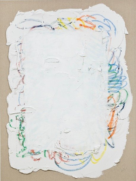 작가는 2019년부터 모래외 젤스톤 등이 섞인 회반죽을 마사천 위에 쌓아 두꺼운 마티에르가 특징인 'In Between' 연작을 통해 화면 위에 질감과 물성을 표현해 오고 있다.
