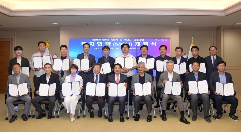 (광주=뉴스1) 박준배 기자 = 광주시는 20일 시청 비즈니스룸에서 자동차·인공지능(AI)‧에너지·의료산업 21개 기업과 투자협약(MOU)을 체결했다.