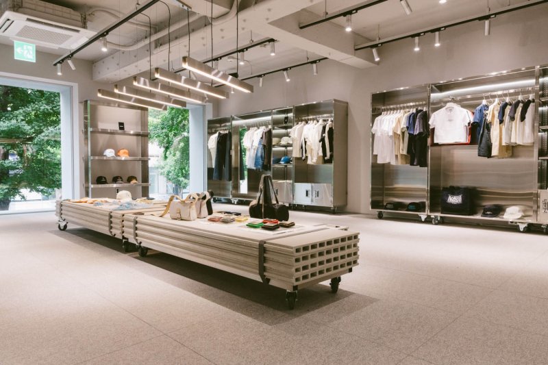 타입일레븐은 지상 3층 연면적 376㎡ 규모다. 각 층은 브랜드 개성과 테마에 맞춰 각기 다른 분위기로 조성했다. 브랜드 구분 없이 자유로이 제품을 경험할 수 있도록 브랜드 간 인위적인 칸막이를 없앴다. 제품이 돋보이도록 깔끔한 스틸 소재 집기로 미니멀한 인테리어를 채택했다. 층마다 배치한 넓은 창문, 거울은 탁 트인 개방감을 선사해 복잡한 홍대 거리에서 타입일레븐만의 여유로움을 느낄 수 있다.