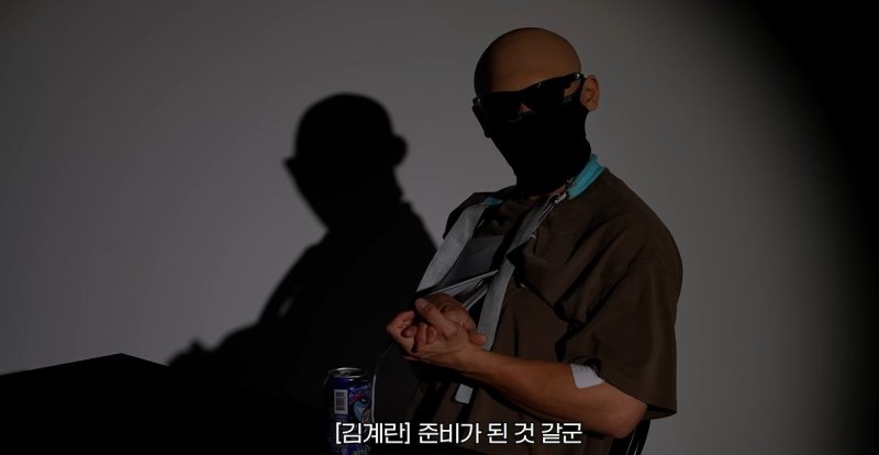 마스크를 쓰고 깁스를 한 상태인 김계란은 QWER의 영상이 끝나자 박수를 치며 "이제 준비가 된 것 같군"이라는 말을 했다.