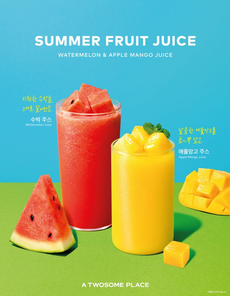 투썸플레이스는 여름마다 다채로운 과일 음료를 내놓고 있다. 그 중 수박 주스와 애플망고 주스는 작년 여름 1분에 18잔씩 팔리며 투썸 여름 음료 판매량 1, 2위를 달성했다.