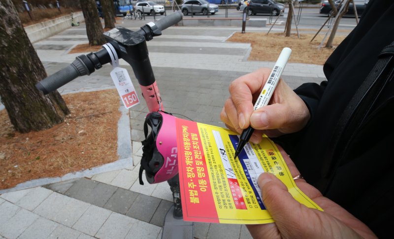 신고는 평일 오전 8시부터 오후 7시까지 받게 되며, 접수한 신고 사례는 해당 전동 킥보드 업체에 실시간 전달해 이동 또는 수거 조치한다.