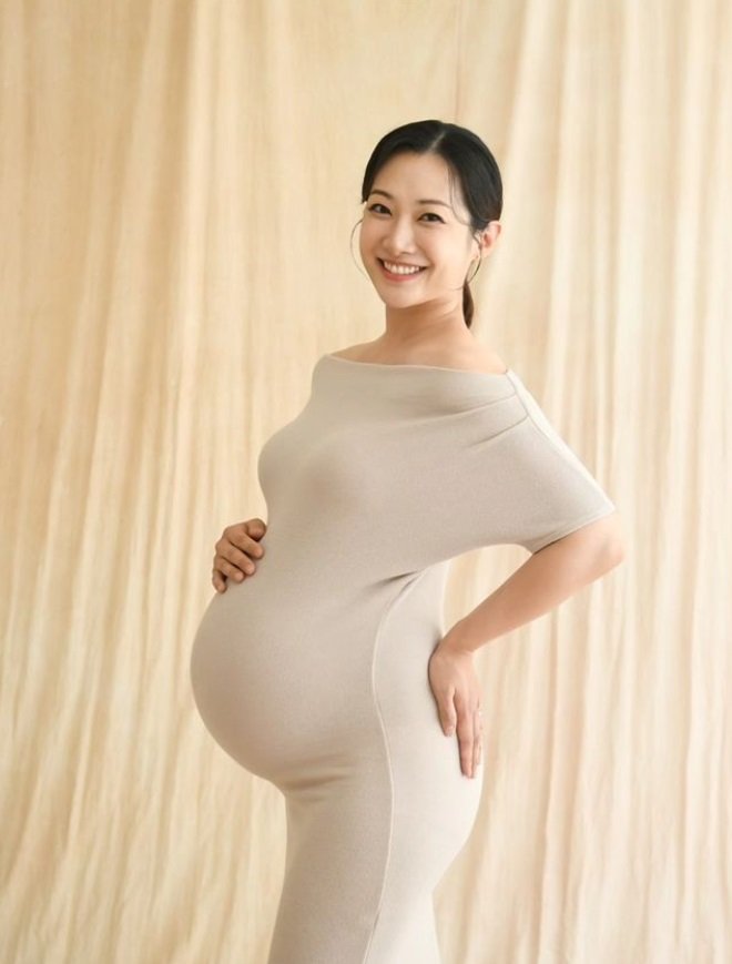 김민정은 27일 자신의 소셜미디어에 만삭 사진을 게재했다. "첫째 때랑 너무 다른 배 크기에 사진 찍고 저도 놀랐네요. 3주 전에 찍은 사진이라 지금은 더 배불···"이라고 설명했다.