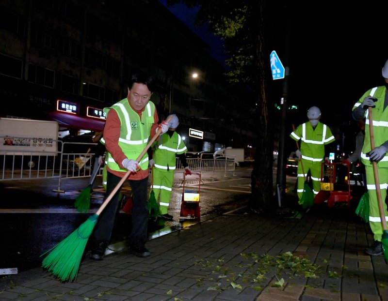 그는 2년 전인 취임 첫날 새벽에도 같은 장소에서 거리 청소를 한 바 있다.