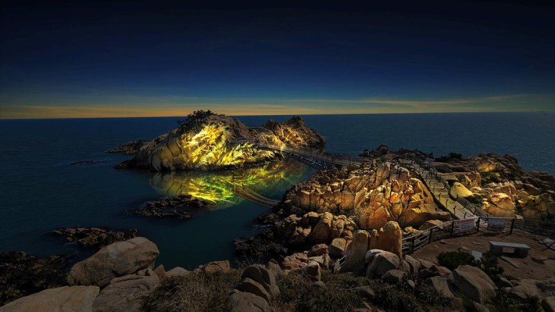2㎞에 달하는 중앙산책로에는 안전 조명과 홀로그램을, 바위섬 대왕암 암벽 면에는 미디어파사드를 비춰 볼거리를 제공한다.