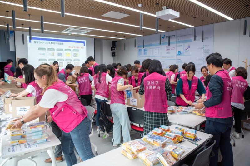 [서울=뉴시스]송연주 기자 = 글로벌 제약바이오 기업 입센코리아가 강남구자원봉사센터와 함께 위기가정을 위한 '케어 박스(CARE BOX) 나눔행사'를 진행했다.