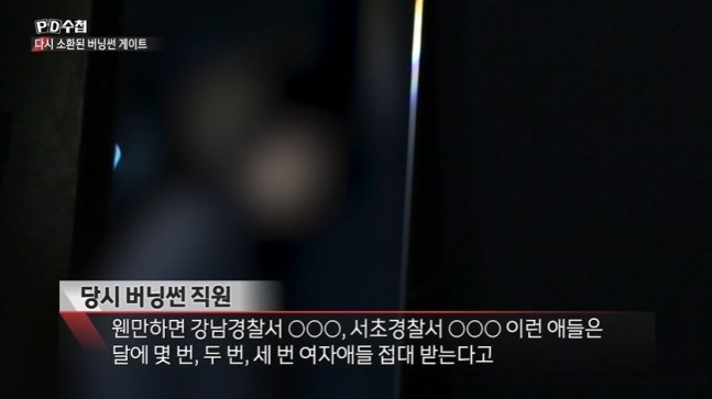 이날 방송에선 클럽 버닝썬과 경찰의 유착 의혹에 대한 내용도 다뤄졌다. 버닝썬의 전 직원 A씨는 방송에서 "서울의 강남경찰서 ○○○이랑 서초경찰서 ○○○, 이런 분들은 한 달에 몇 번씩 여자 접대를 받았다더라"고 주장했다.