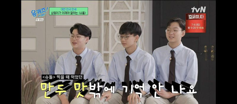 3일 방송된 tvN '유 퀴즈 온 더 블럭'에서 내년 중학생이 되는 대한·민국·만세는 170㎝가 넘는 키를 자랑하며 '폭풍 성장'한 모습을 선보였다.