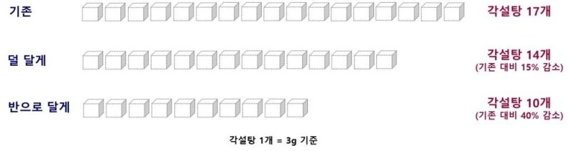 '덜 달게'의 경우 당 함량이 평균 44.4g로 기존 당도에 비해 약 15%, '반으로 달게'의 경우 31.9g으로 약 40% 줄어들었다.