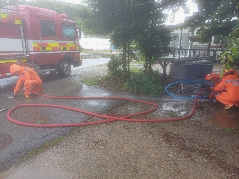 이날 오전 10시 1분쯤 장군면 산학리에서 한 주민이 마당에 물이 차 나갈 수 없다는 신고가 들어왔다. 낮 12시 30분쯤에는 연서면 한 요양원에 나무가 가스배관으로 쓰러졌다.