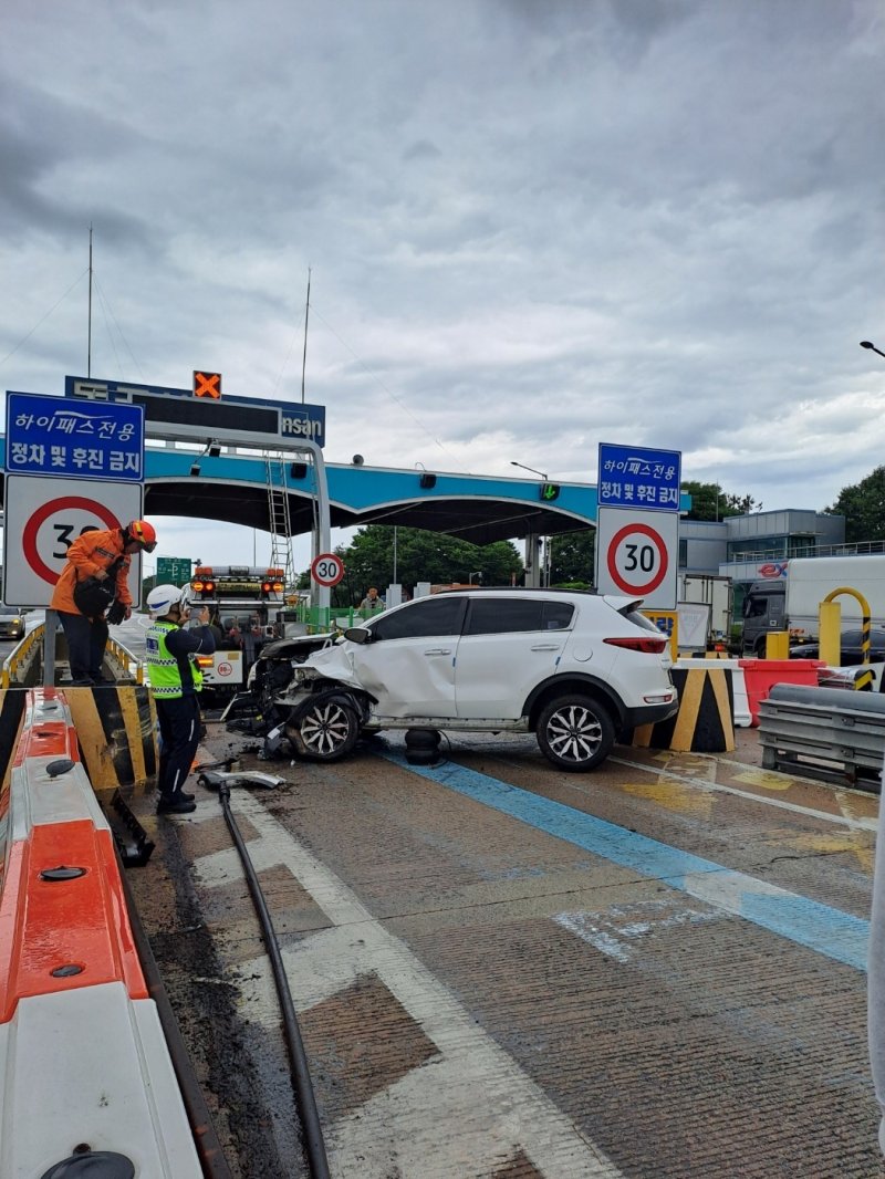 서해안고속도로 동군산IC 톨게이트서 SUV '쿵'…동승자 3명 다쳐