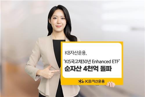 (서울=연합뉴스) 곽윤아 기자 = KB자산운용은 'KBSTAR KIS국고채30년 Enhanced' 상장지수펀드(ETF)의 순자산이 4천억원을 넘어섰다고 10일 밝혔다.
