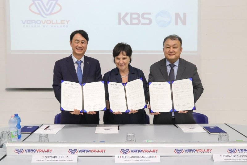 한국배구연맹과 프로배구 주관방송사 KBSN은 9일(현지시간) 이탈리아 몬차 아레나에서 '2024 한국-이탈리아 남자배구 글로벌 슈퍼매치' 업무협약식을 갖고 한국-이탈리아 남자배구 글로벌 슈퍼매치를 오는 9월 7일과 8일 양일간 개최한다고 밝혔다.