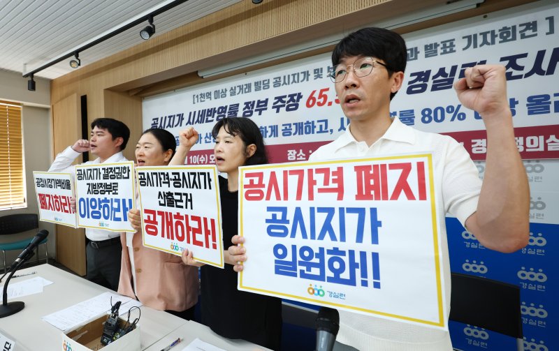 시민단체 경제정의실천시민연합(경실련)은 10일 오전 10시30분께 서울 종로구 경실련 강당에서 "정부 발표 지난해 공시지가 시세반영률은 65.5%지만 경실련 조사를 통해 실제로는 35%로 나타났다"고 지적했다.