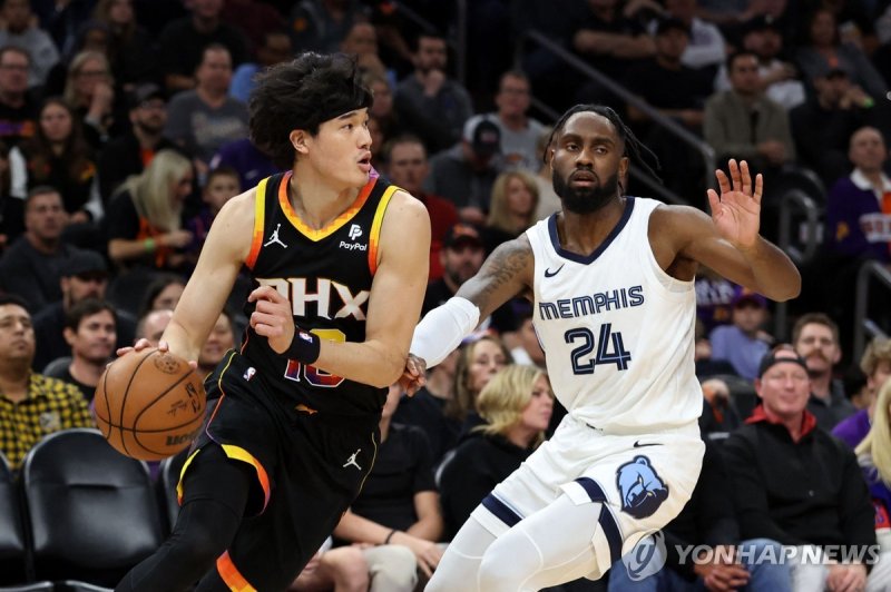 와타나베 유타(왼쪽) PHOENIX, ARIZONA - DECEMBER 02: Yuta Watanabe #18 of the Phoenix Suns drives to the net against Jaylen Nowell #24 of the Memphis Grizzlies during the first quarter at Footprint Center on December 02, 2023 in Phoenix, Arizona. NOTE TO USER: User expressly acknowledges and agrees that, by downloading and or using this photograph, User is consenting to the terms and conditions of the Getty Images License Agreement. Zac BonDurant/Getty Images/AFP (Photo by Zac BonDurant / GETTY IMAGES NORTH AMERICA / Getty Images via AFP) (서울=연합뉴스) 최태용 기자 = 미국프로농구(NBA)에서 뛰었던 일본의 국가대표 와타나베 유타가 일본프로농구로 자리를 옮겼다.