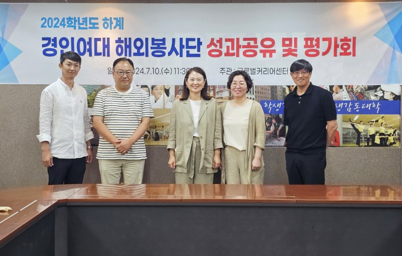 [인천=뉴시스] 정일형 기자 = 경인여자대학교는 최근 K-SSG(Kyung-In Serving & Sharing in the Global) 사랑과 나눔의 해외봉사 활동을 마치고 본교 스포토피아관 소회의실에서 국제교류원장과 글로벌커리어센터장 및 담당 직원, 해외봉사 인솔교원들이 함께 모여 해외봉사 성과공유 및 평가회를 가졌다고 14일 밝혔다.