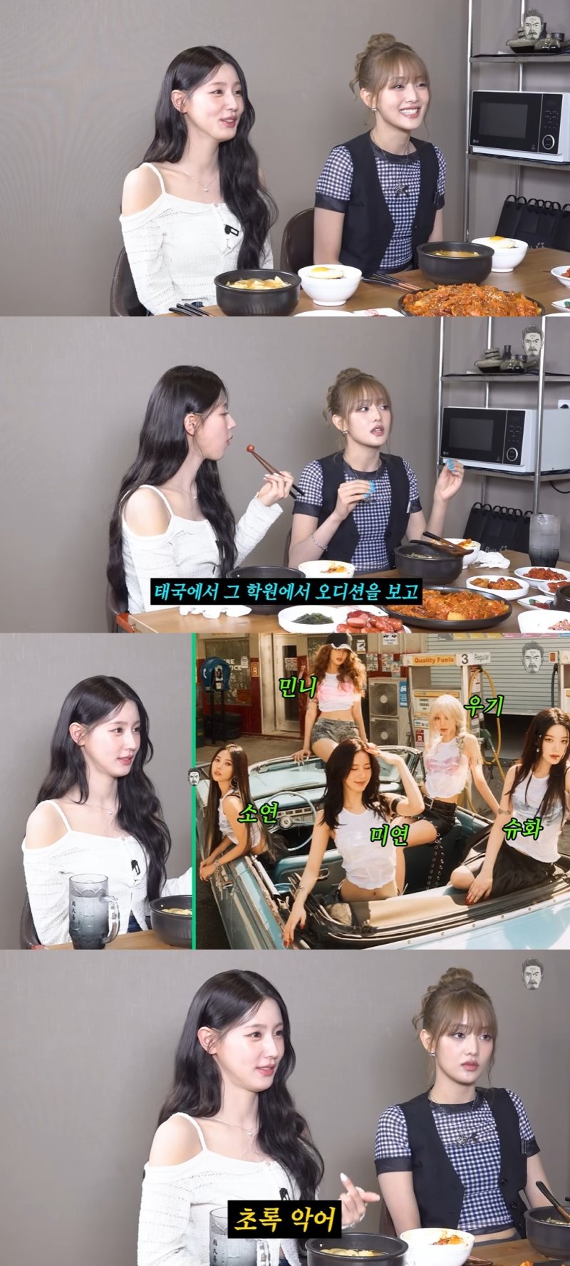 공개된 영상에서 미연은 "친구가 큐브에서 노래 부르는 한국인 멤버를 찾고 있다고 해서 오디션을 보고 데뷔하게 됐다"라며 (여자)아이들로 데뷔한 과정을 설명했다. 민니 또한 "노래 학원에 다니다가 큐브 직원분들이 직접 오셔서 태국 학원에서 오디션을 봤다"고 말했다.
