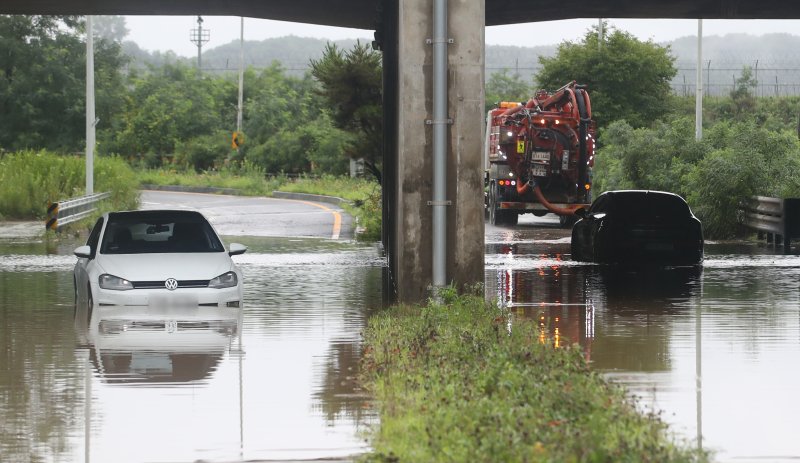 침수차량 운전자들은 모두 대피했고, 소방 당국은 배수탱크 차량을 동원해 배수 작업을 벌였다.