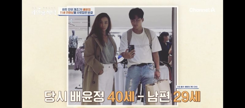 지인들과 술자리에서 남편을 처음 만났다는 그는 "겁나 아기네" 생각하고 쳐다보지도 않았다"고 떠올렸다. 그런데 유쾌하고 성격이 좋아 보여 연락처를 주고받았다고 했다. 그때 배윤정 나이 40세였고, 서경환은 29세였다.