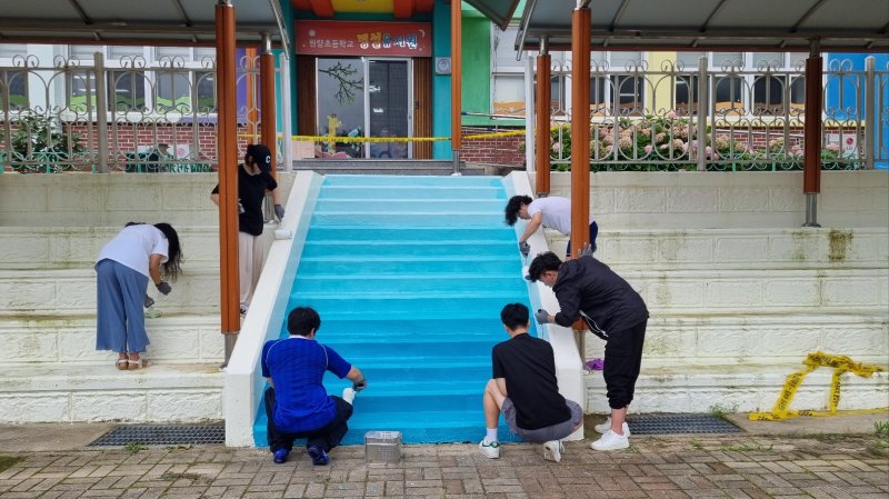 [창원=뉴시스] 홍정명 기자 = 경상남도자원봉사센터는 22일부터 23일까지 1박2일 통영시 욕지면 원량초등학교에서 경상남도대학생 봉사단, 경남여성리더 봉사단 25명이 '더 안전한 학교 만들기' 봉사활동을 펼쳤다고 전했다.