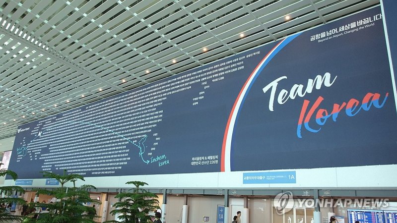 (서울=연합뉴스) 박형빈 기자 = 인천국제공항공사(사장 이학재)는 파리 올림픽 국가대표 선수단을 응원하기 위한 대형 현수막을 인천공항 제2여객터미널 출국장에 게시한다고 23일 밝혔다.