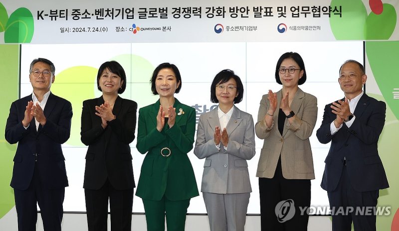 중소벤처기업부와 식품의약품안전처는 24일 용산 CJ올리브영 본사에서 'K-뷰티 중소벤처기업 글로벌 경쟁력 강화 방안'을 공동 발표하고 업무협약을 체결했다.