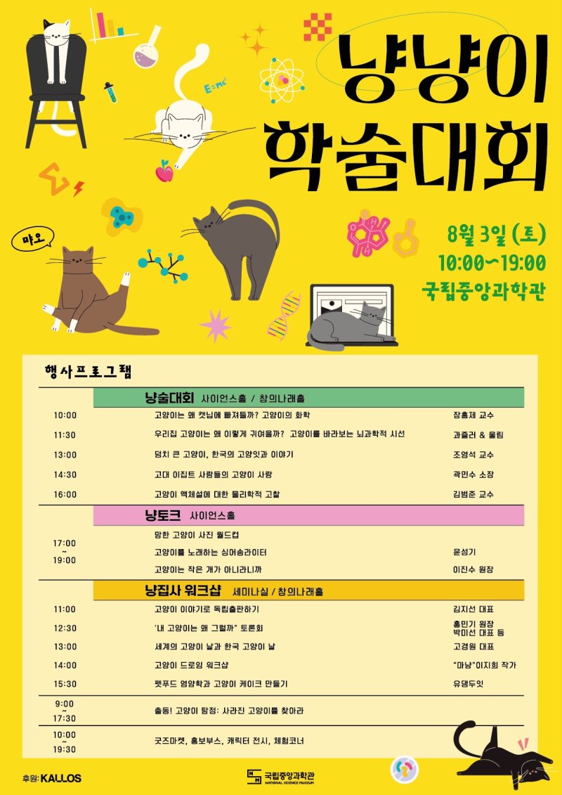 이 행사는 8월 8일 세계 고양이 날을 맞이해 과학관에서 처음으로 여는 것이다. 고양이를 과학적으로 고찰하는 강연과 다채로운 행사로 구성됐다.