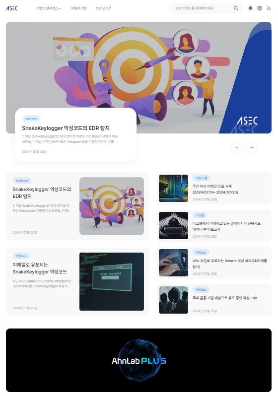 [서울=뉴시스]송혜리 기자 = 안랩은 자사 위협 인텔리전스 분석 정보 채널 'ASEC 블로그'의 콘텐츠를 다양화하고 사용자 편의성을 높였다고 31일 밝혔다.