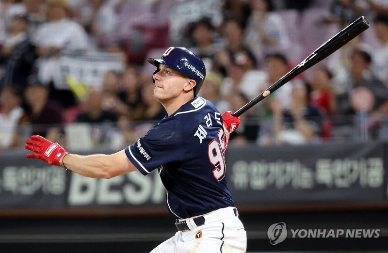 후속 타자 강승호는 고의 4구로 출루했고, 외국인 타자 제러드 영은 1루 내야 안타를 쳤다.