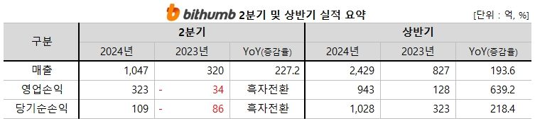 빗썸은 전년 대비 시장 상황이 좋아진 만큼 뚜렷한 실적 개선이 이뤄졌지만, 성장세가 2분기 들어 다소 둔화했다고 평가했다.