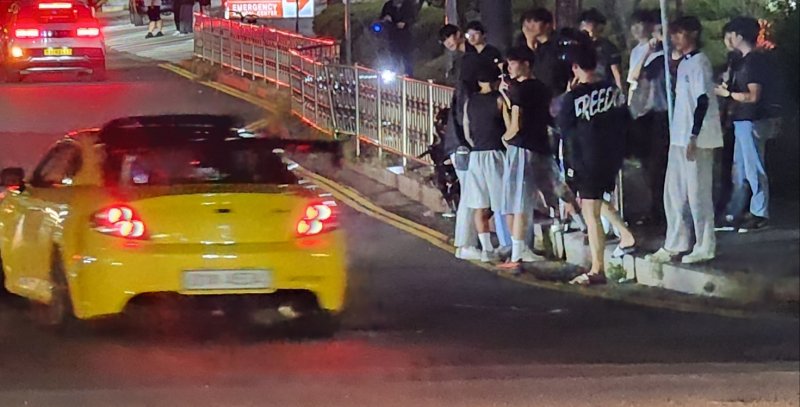 예고된 시간이 다가올수록 도로 주변에 몰려든 사람들은 더 늘어났다. 도로 주변 골목 등에서도 폭주를 관람하기 위해 모인 사람들의 차량과 오토바이 등이 뒤엉켰다. 이들은 굉음을 내며 운행하는 차량이나 오토바이가 등장할 때면 손뼉을 치며 환호했다.
