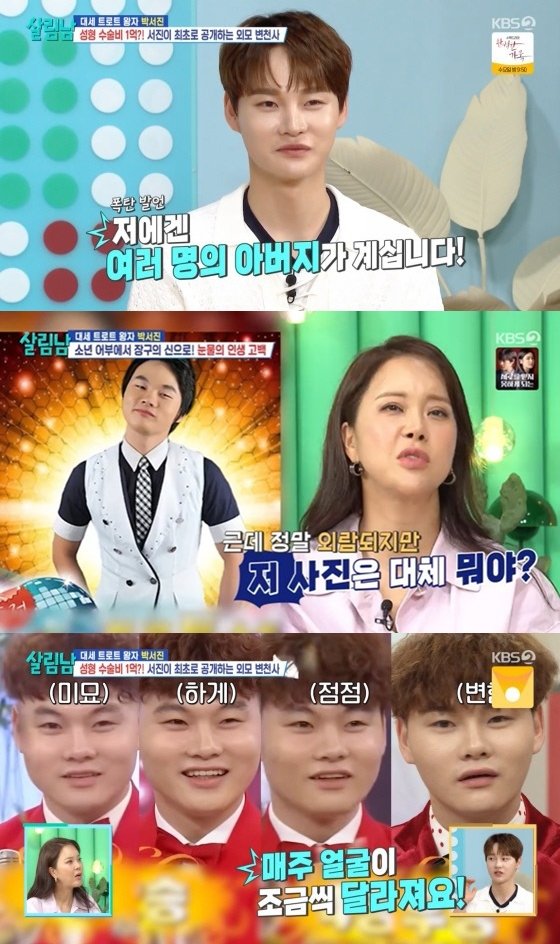 박서진은 17일 KBS 2TV '살림하는 남자들'에서 성형 사실을 인정했다. 여동생 박효정씨가 "첫 콘서트 때는 안 고쳤을 때 아니냐"고 묻자, 박서진은 "다들 모르는데 풀튜닝한 것"이라고 고백했다.