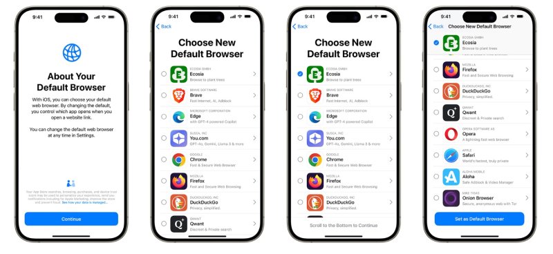 해당 업데이트를 살펴보면 EU 내에서는 기존에는 사파리로 고정됐던 애플 기기의 기본 웹 브라우저를 자유롭게 바꿀 수 있게 된다.