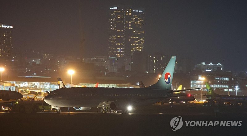 (제주=연합뉴스) 변지철 기자 = 제주에서 김포로 갈 예정인 대한항공 항공기가 26일 밤 기체고장으로 활주로에 멈춰서면서 제주공항을 이용하는 항공기들이 대거 지연 또는 결항 조치됐다.