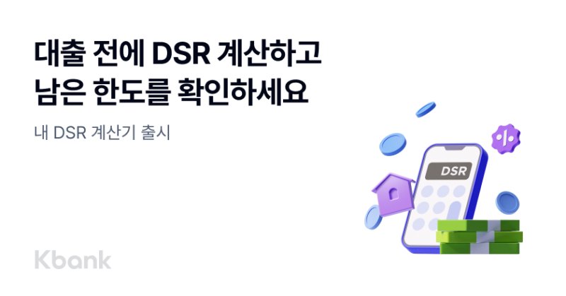 [서울=뉴시스]이주혜 기자 = 케이뱅크는 최근 '내 DSR 계산기' 서비스를 출시했다고 28일 밝혔다. 내 DSR 계산기는 고객의 현재 총부채원리금상환비율(DSR)과 이에 따른 금융권 예상 대출한도를 손쉽게 확인할 수 있는 서비스다.