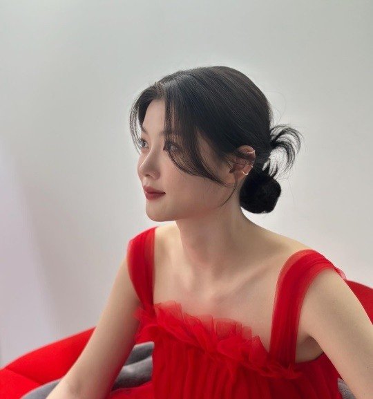 사진 속 김유정은 빨간 드레스를 입고 다양한 포즈를 취했다. 뚜렷한 이목구비와 고혹적인 미모가 감탄을 자아낸다.
