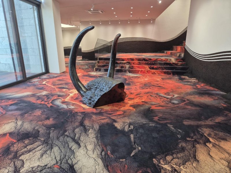 대형 설치 작업과 조각 작업을 주로 해 온 작가는 이번 전시에서 3차원 시뮬레이션 기술을 이용해 전시장을 용암이 가득한 공간으로 변신시켰다. 벽면에는 일정한 곡선이 반복되는 흙 벽화가 설치됐다.