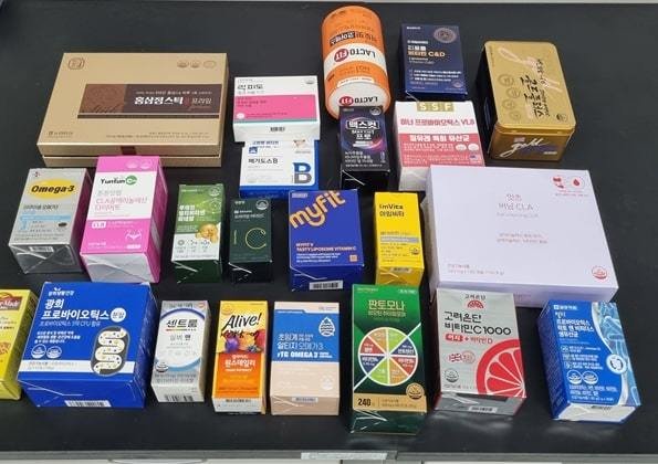 검사 대상은 식품의약품안전처 건강기능식품 인증을 받은 비타민 및 무기질 등 영양성분 제품 113건과 홍삼 제품, 프로바이오틱스, EPA 및 DHA 함유 유지 등 기능성 원료 제품 50건 등이었다.