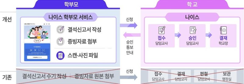 지금까지는 학부모가 진료 확인서 등 증빙 자료를 첨부해 결석 신고서(결석계)를 담임교사에게 제출하면 담임교사가 확인하고 수기로 결재한 뒤 보관해 왔다.
