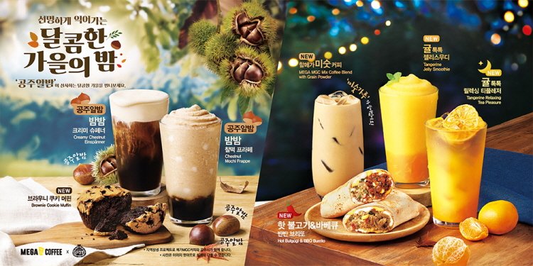 [서울=뉴시스]구예지 기자 = 커피브랜드 메가MGC커피가 공주알밤과 귤을 활용한 신메뉴를 출시한다고 5일 밝혔다.