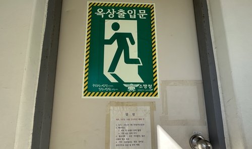 (서울=연합뉴스) 김연수 인턴기자 = 부천 호텔 화재(8월22일)로부터 일주일 후인 지난달 29일 오후 3시께 서울 성동구 12층 높이의 아파트. 2006년 준공된 복도식 아파트다. 1층부터 꼭대기 층까지 직접 올라가 봤다. 최고 기온 34도인 날씨에 가쁜 숨을 내쉬며 계단을 걸어 올라가 10층에 도착한 순간, 굳게 닫힌 철문이 보였다. 옥상으로 이어지는 출입문이 10층부터 막혀 있는 것.